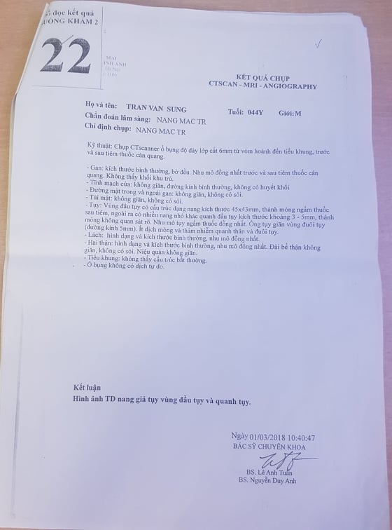 - Siêu âm: Khối U nang còn KT 0.8 x 1 cm (Trước điều trị 6,8cm).